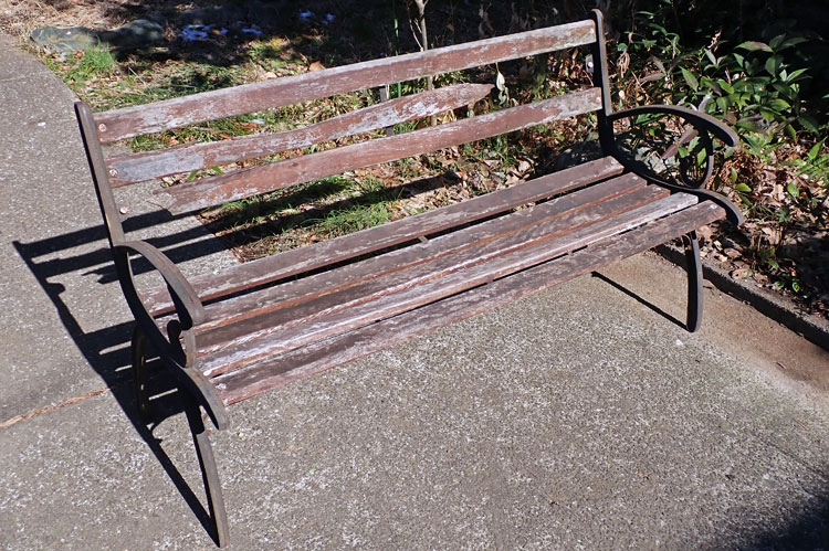 1枚目の画像が元のベンチで(両袖は鋳鉄)、数年前から木部が朽ちてきて座るのが危ない状態になりました。