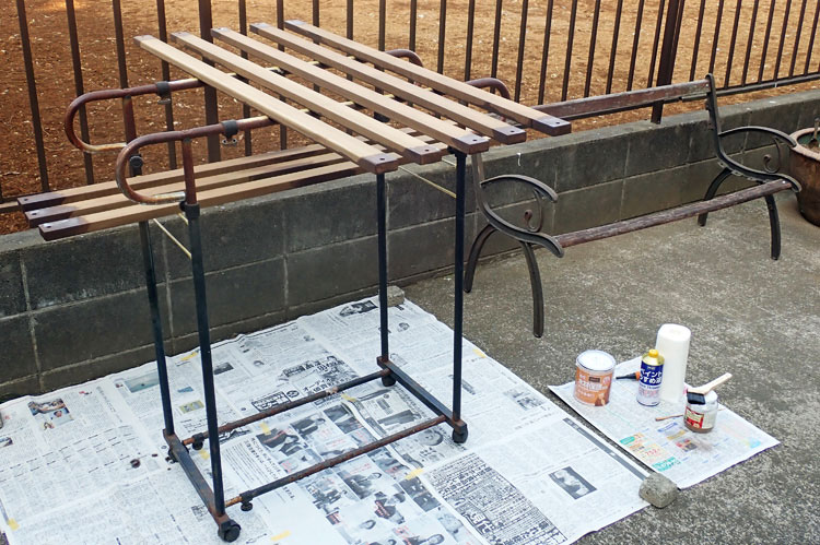 購入した材料を使って、二十年近く前に購入した木製のベンチを修繕しました。