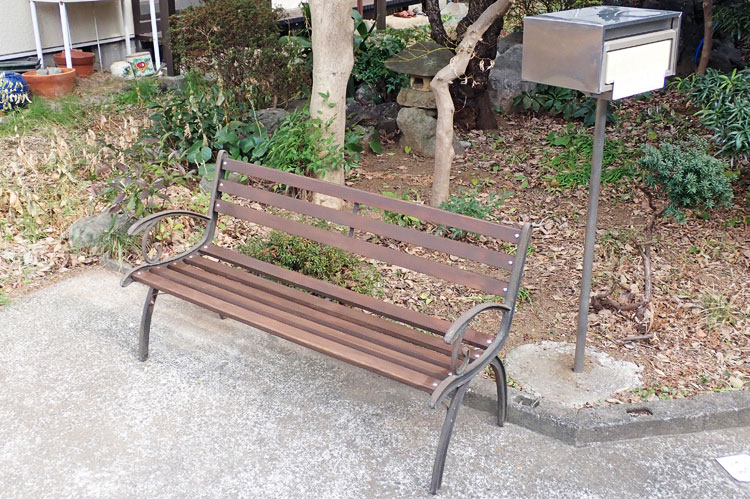 私は年3回しか一時帰国しませんが(通算3ヶ月/年)、横浜の自宅には家族4人が居て、特に母(94歳)は最近足腰が弱くなってきたので、天気の良い日は庭に出て、このベンチに座って寛いでくれると思います。