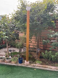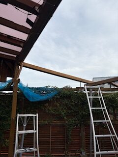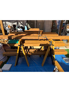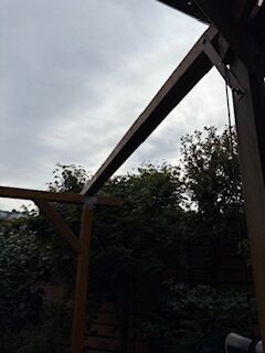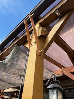 今回はウッドデッキから日除を伸ばす枠作りに使いました。